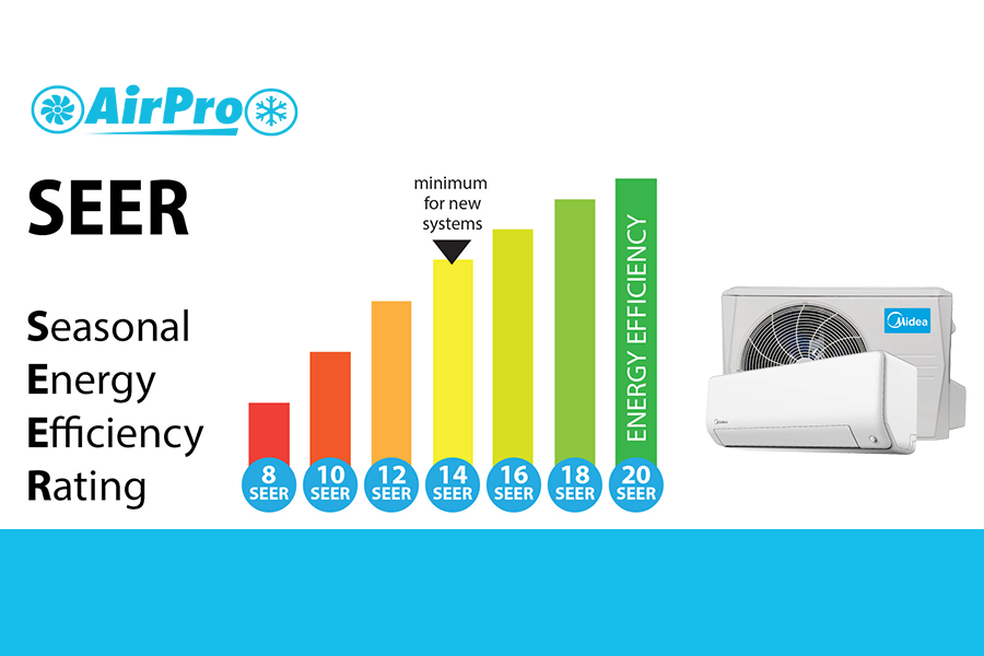 Primero, para comprender SEER son las siglas en ingles de Seasonal Energy Efficiency Ratio. Esta es la relación de la potencia de enfriamiento de un equipo de aire acondicionado durante una temporada de enfriamiento típica, dividida por la energía que usa en Watt-Horas. También puede denominarse Clasificación de Eficiencia Energética Estacional.